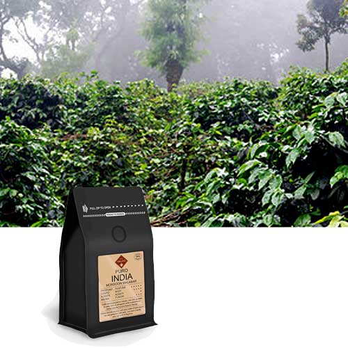 káva INDIE MONSOONED Malabar se vyznačuje nízkou kyselostí, intenzivní vůní a výrazným plným tělem, s kořenitými tóny pepře a čistou, dlouho přetrvávající chutí.